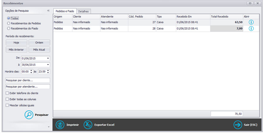 Pedidos no Caixa/PDV