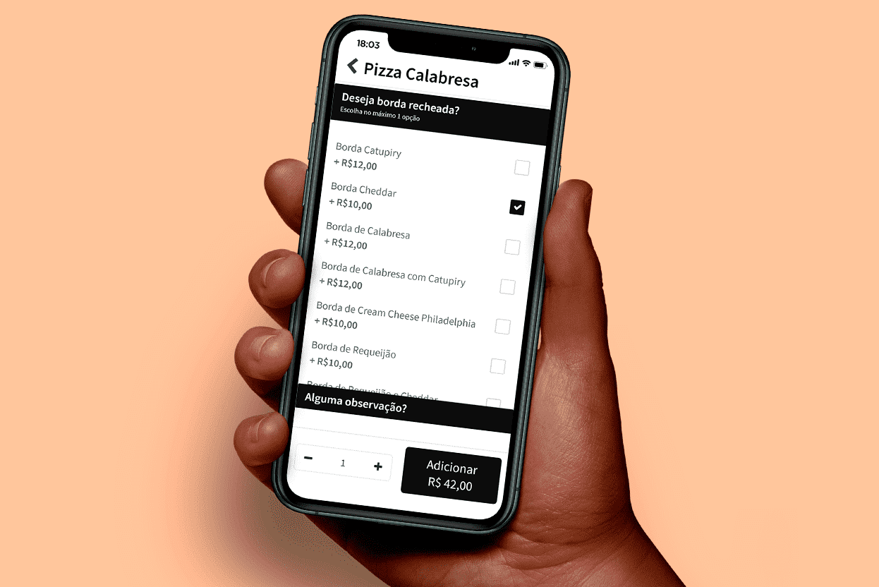 Seja para pedidos no celular através de seu cardápio digital, ou direto no PC através do Consumer PDV, você tem todo o controle de personalizar sua pizza.